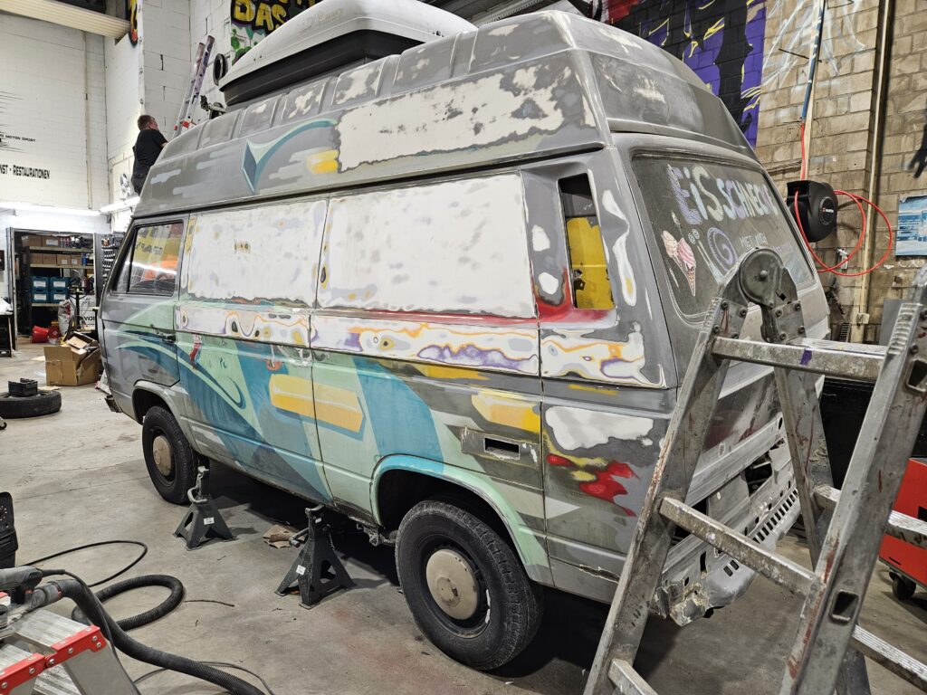 Wir haben am 04.11.2024 begonnen uns um die Roststellen an unserem T3-Eisbus zu kümmern.