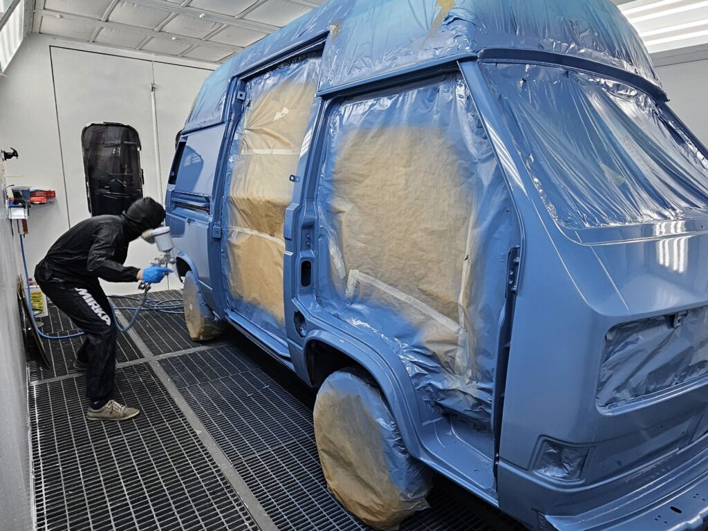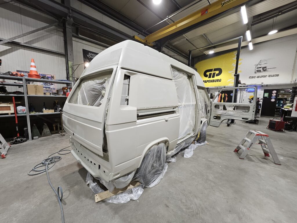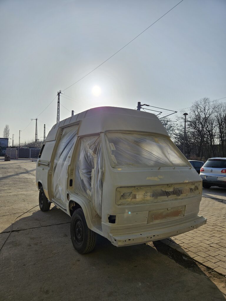 Mitte April wird lackiert und im Anschluss, der Bus wieder zusammengebaut.